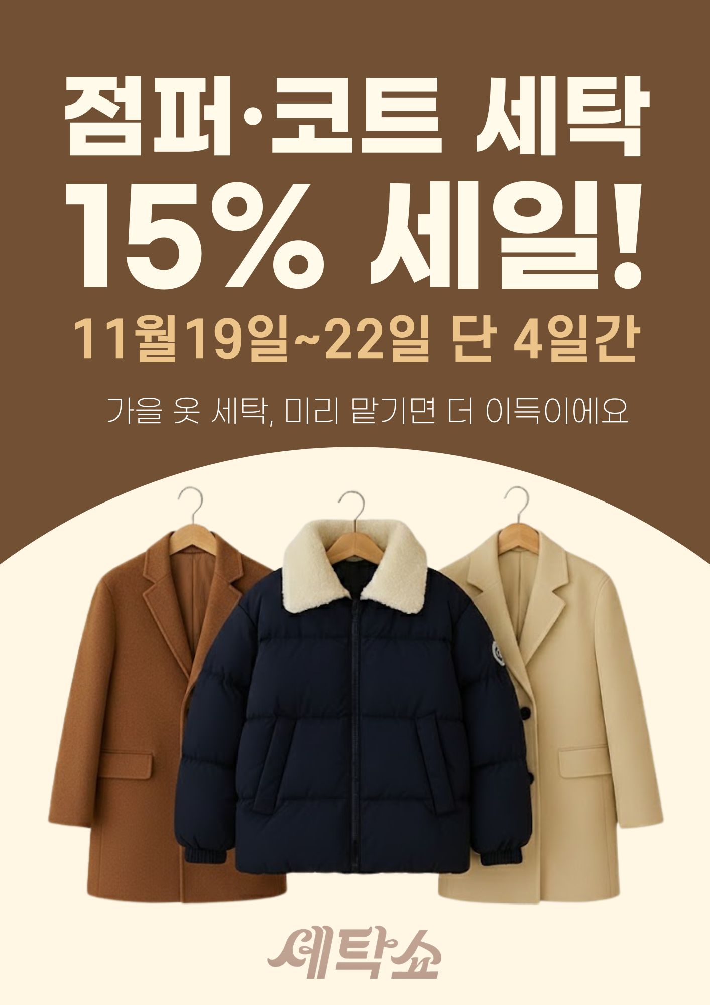 세탁쇼의 코트·점퍼 세탁 15% 할인이 시작돼요!